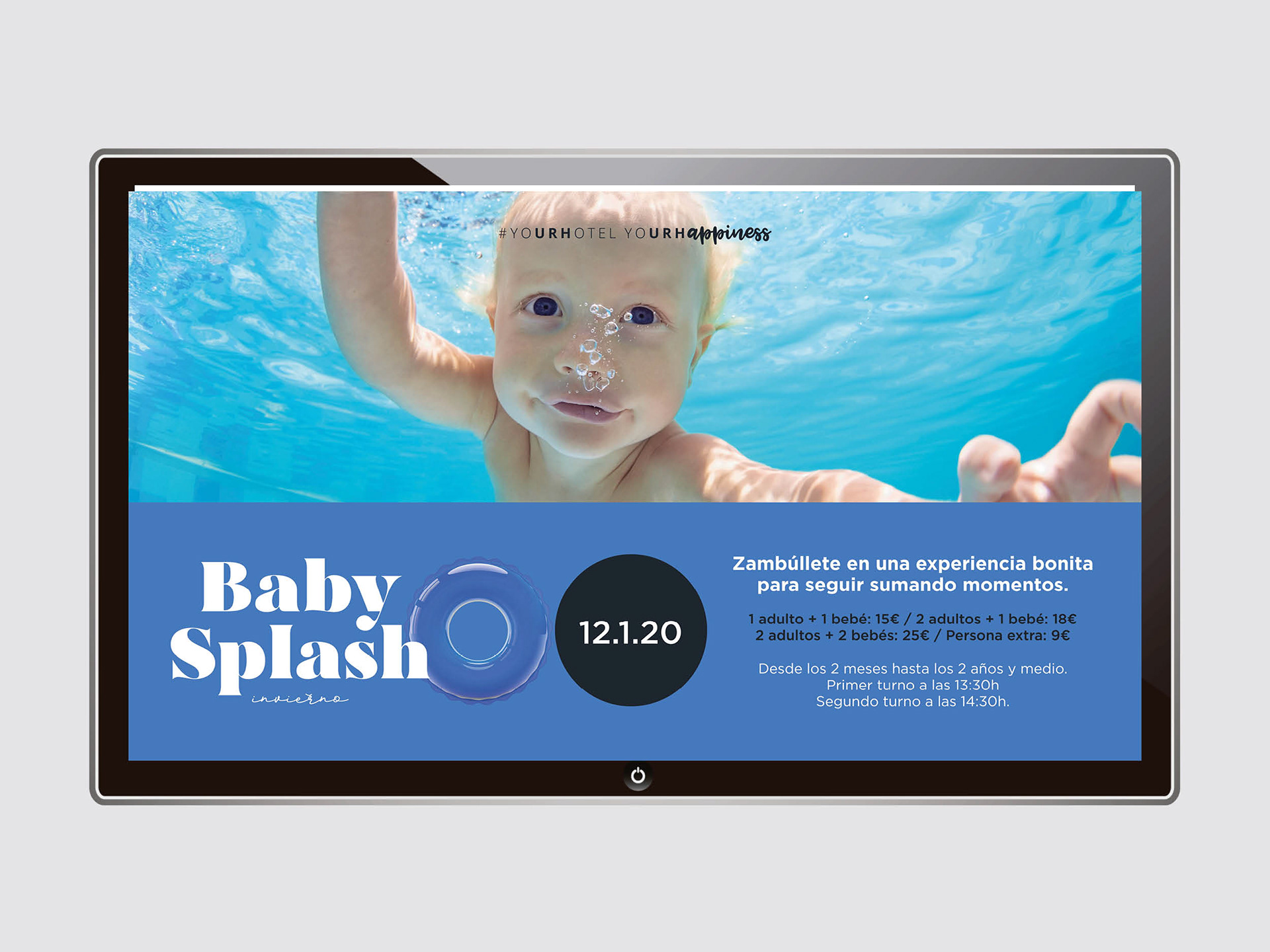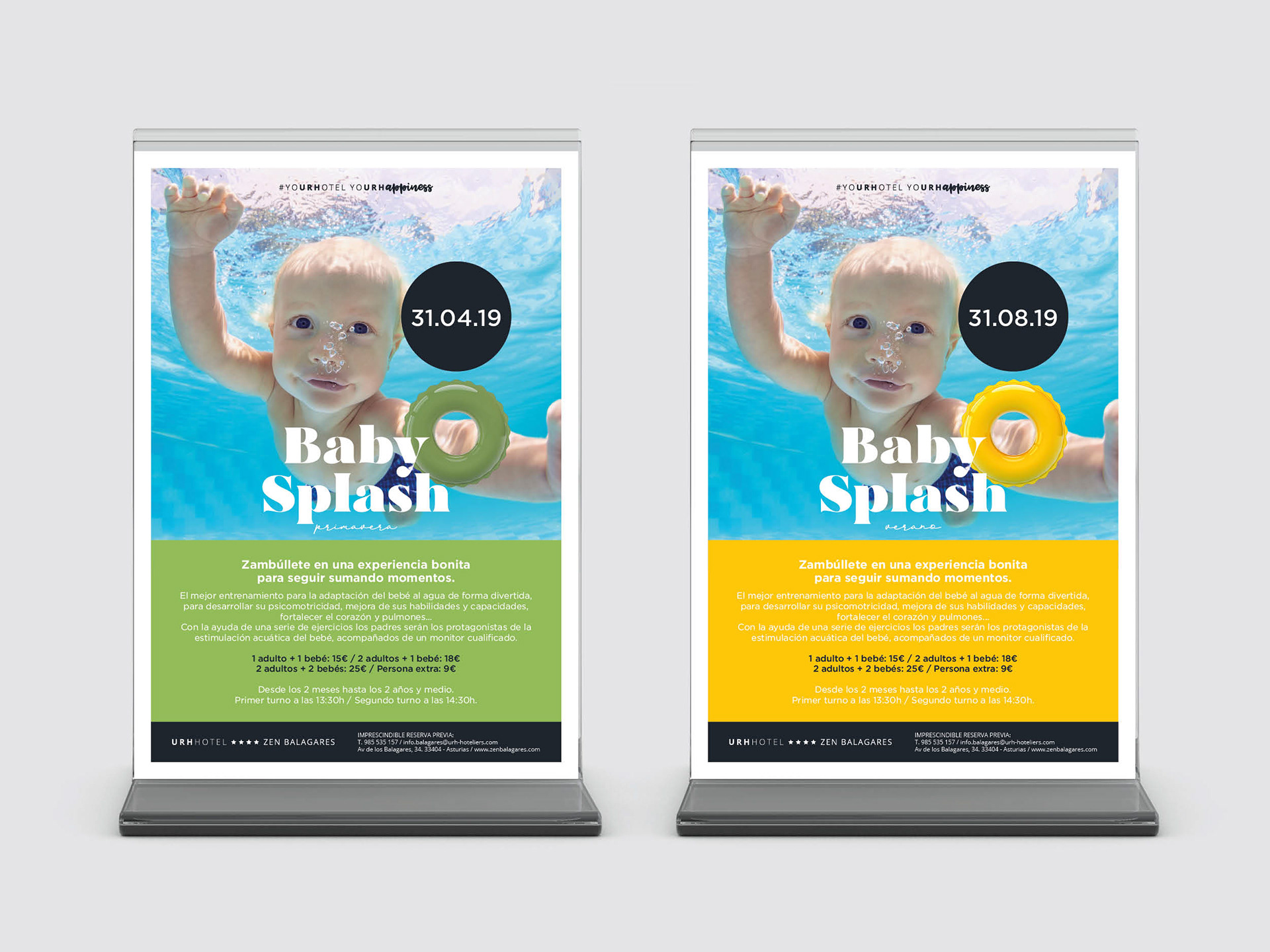 Campaña Baby Splash para el hotel URH Zen Balagares de Asturias. Esta campaña pretende dar a conocer y promover las instalaciones del Spa del hotel, ofreciendo cursos adaptados para bebés.
