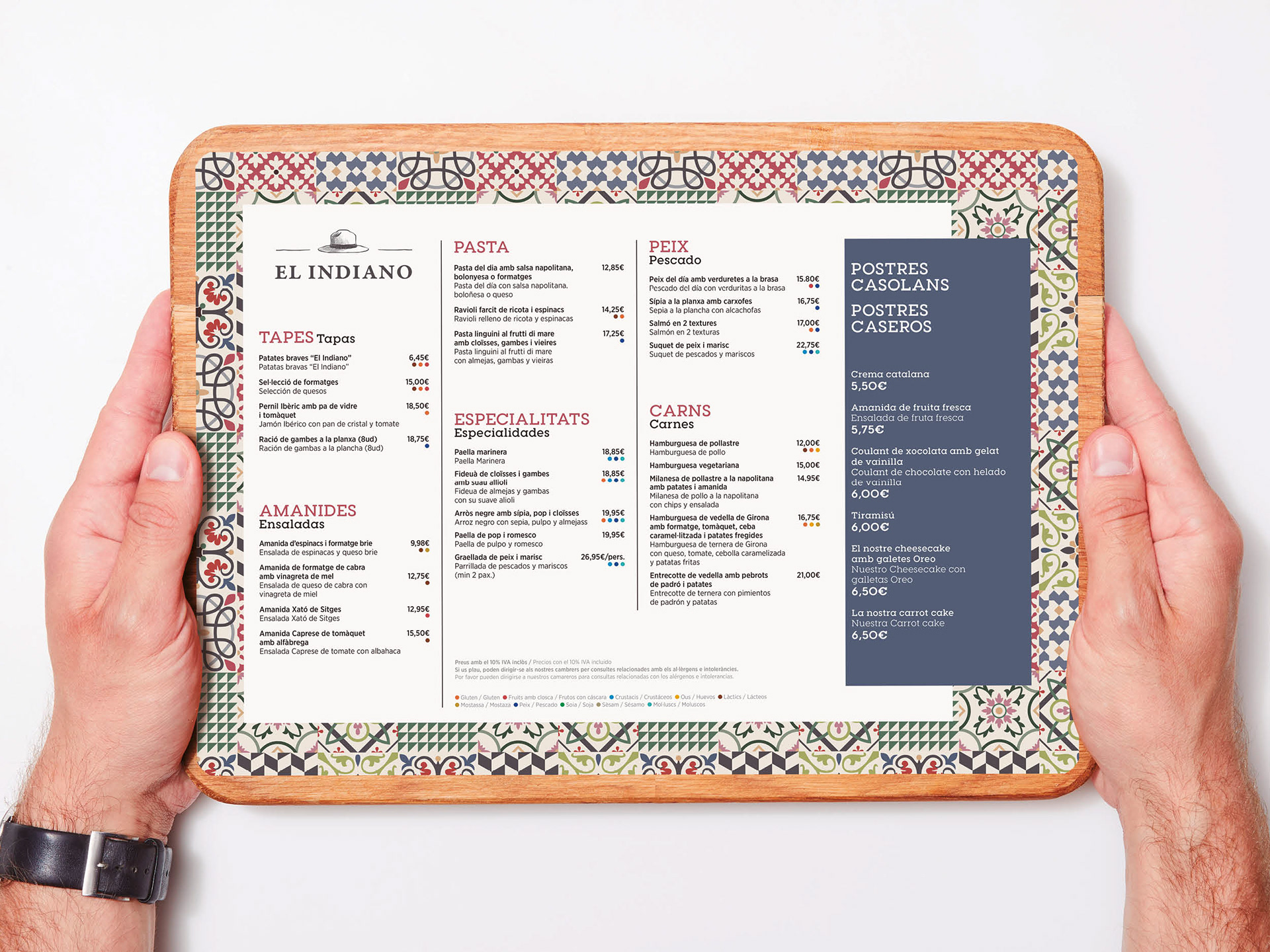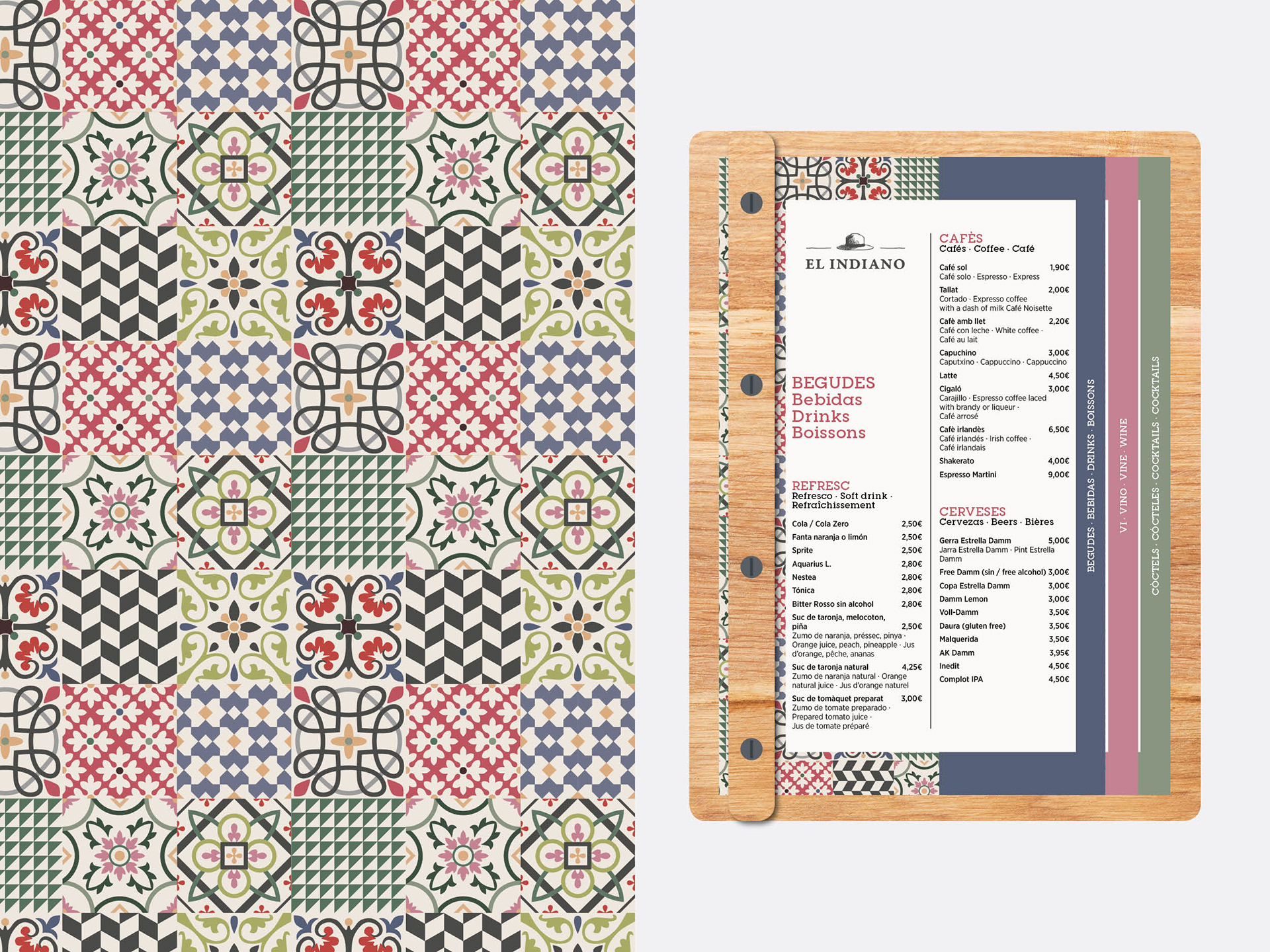 Menús para el restaurante El Indiano del hotel URH Sitges Playa. Carta de restaurante y carta de bebidas.