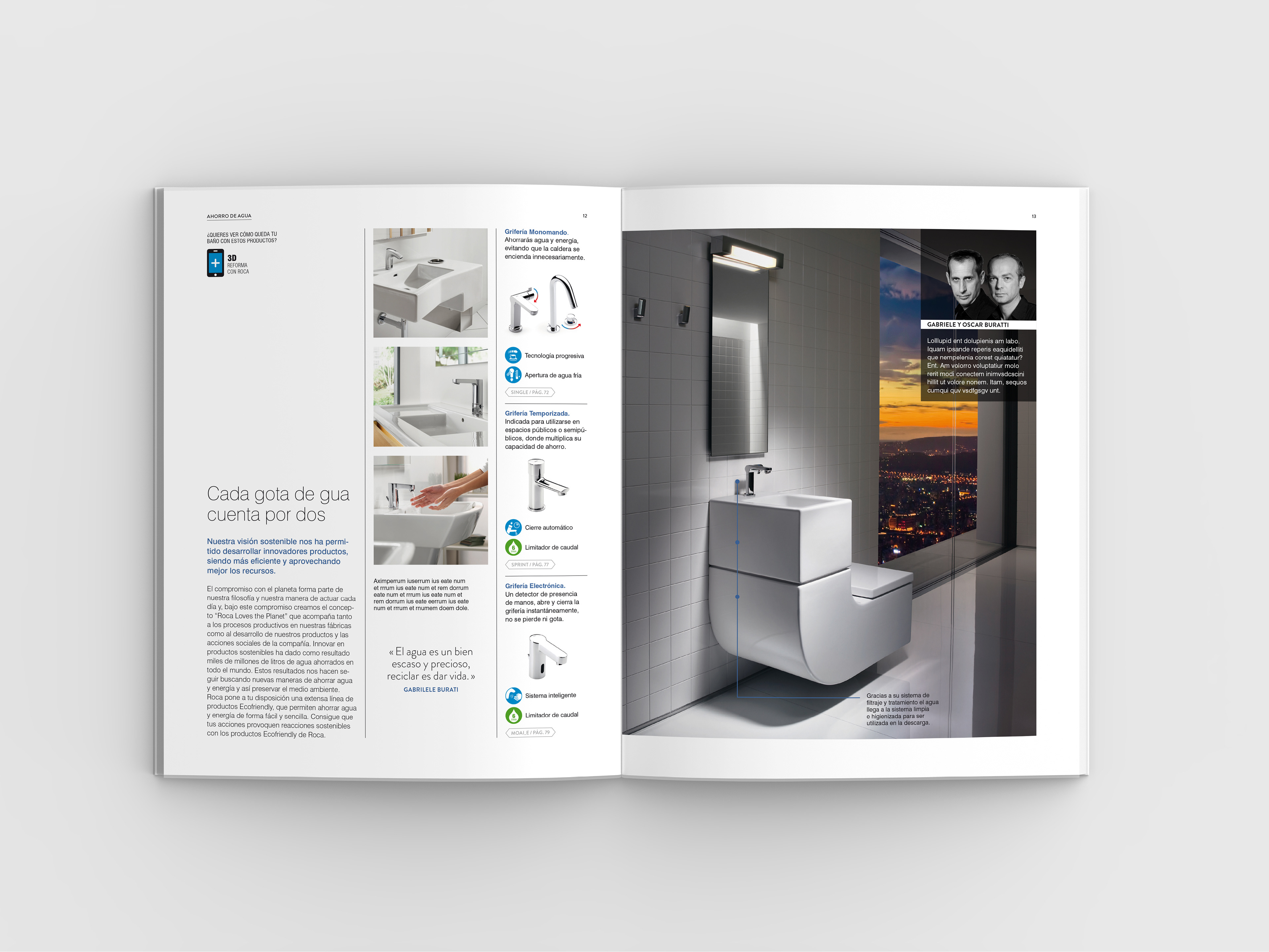 Diseño del catálogo anual para promocionar los nuevos productos y soluciones de Roca.