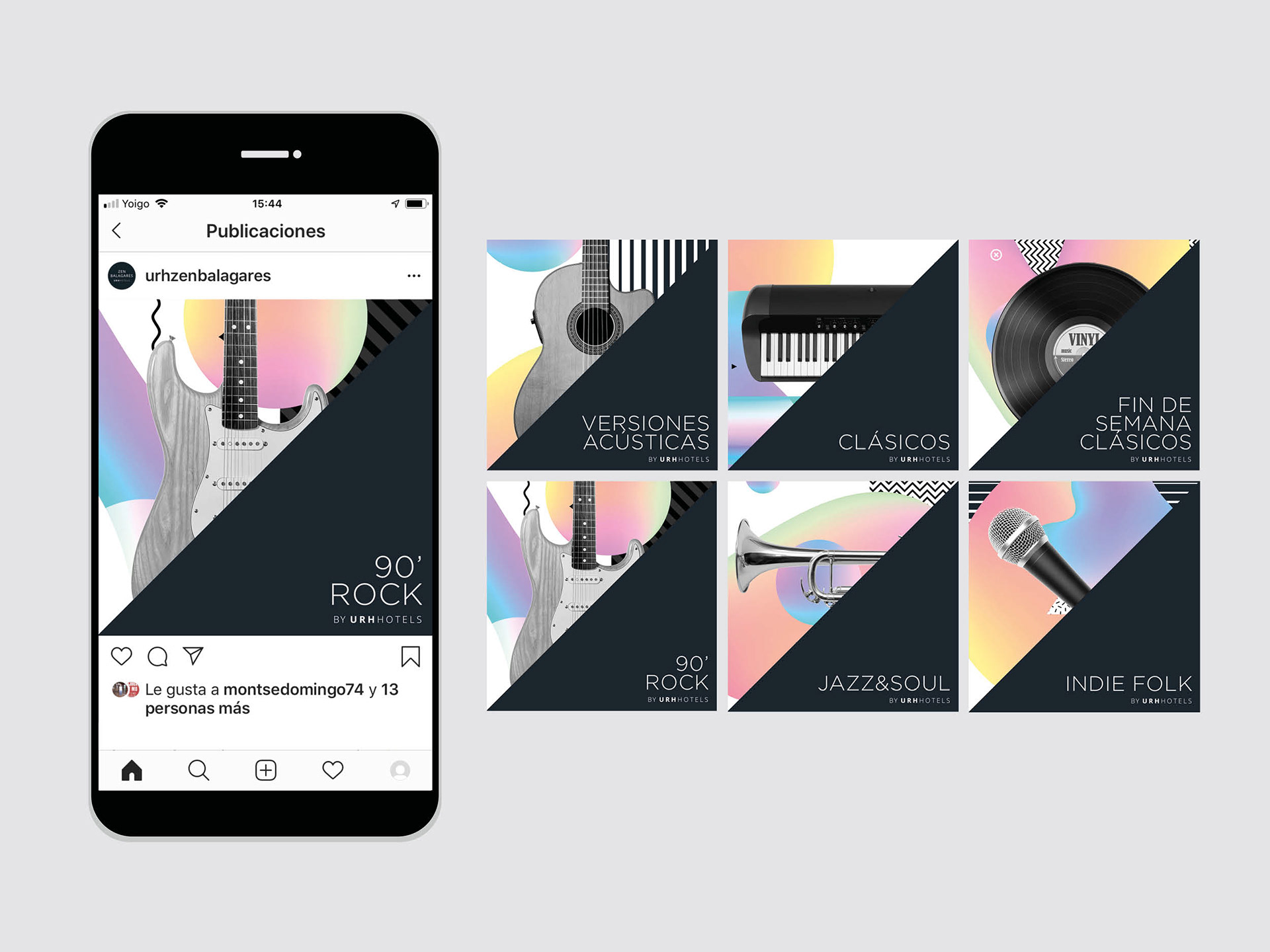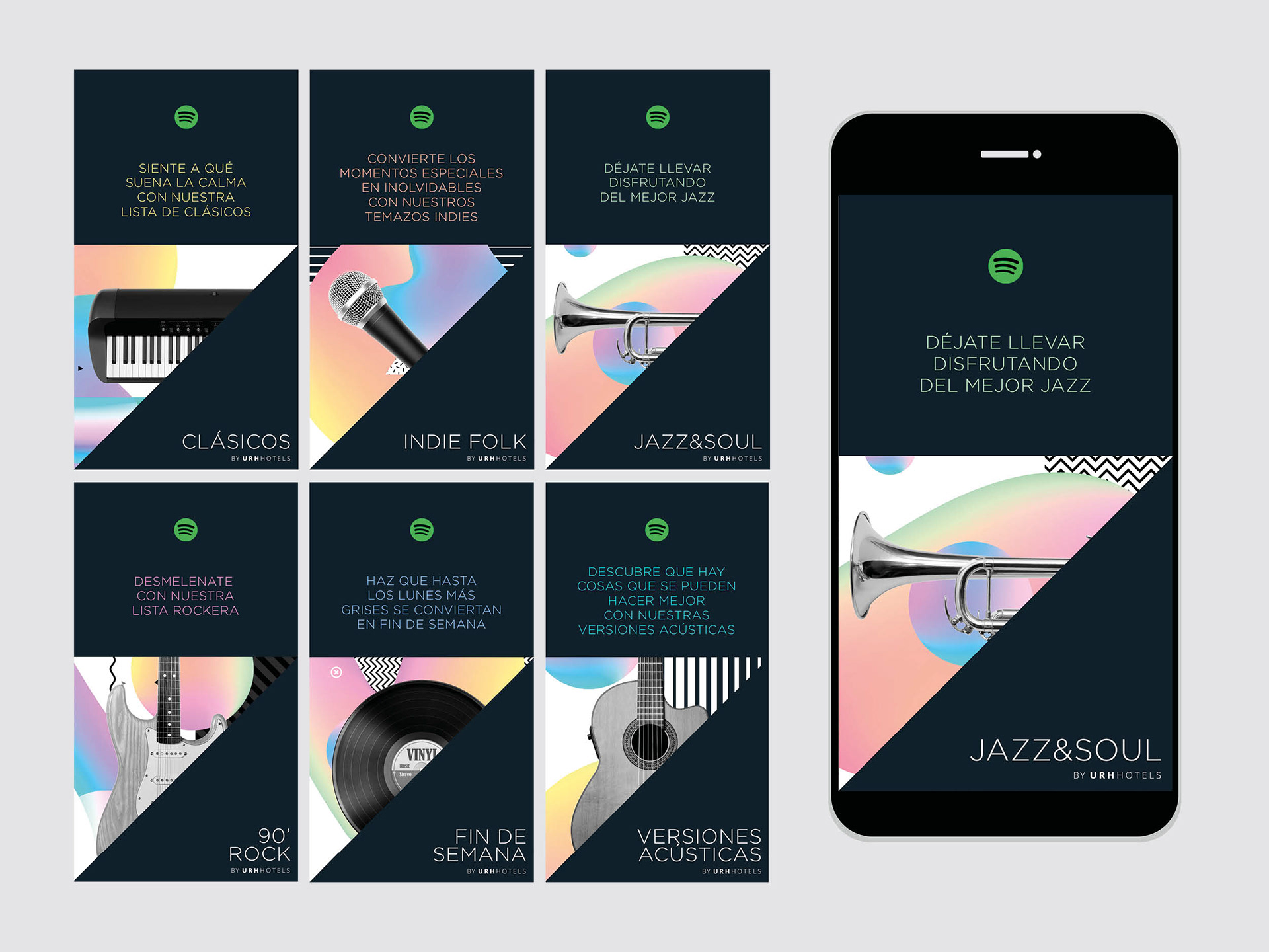 Carátulas y publicidad en redes sociales de los diferentes playlist de la cadena URH.